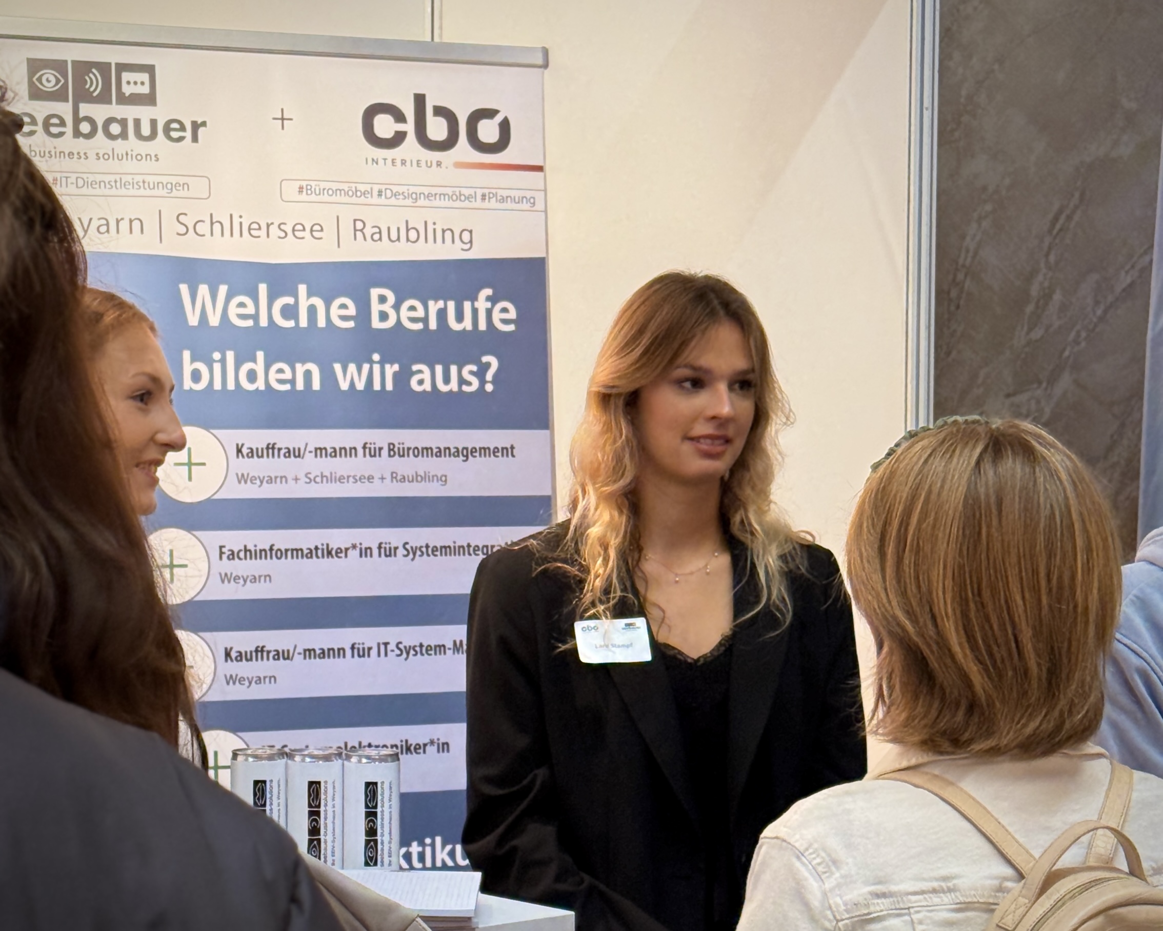 Am 11. Oktober 2025 waren SBS und cbo auf der Stuzubi-Messe im Waitzinger Keller in Miesbach vertreten. Viele Besucher:innen informierten sich über unsere Ausbildungs- und Karrieremöglichkeiten. Besonders gefragt waren die persönlichen Einblicke unserer Auszubildenden. Die Messe war ein voller Erfolg – wir freuen uns schon auf die nächste Stuzubi!
